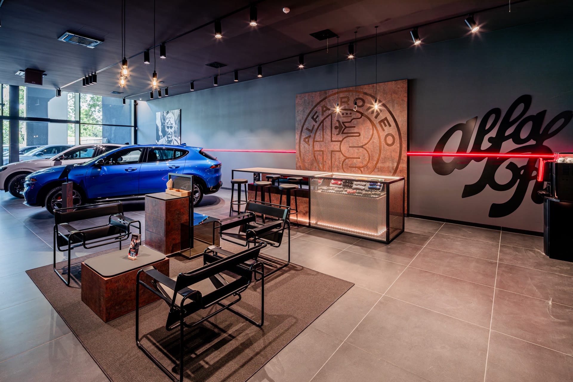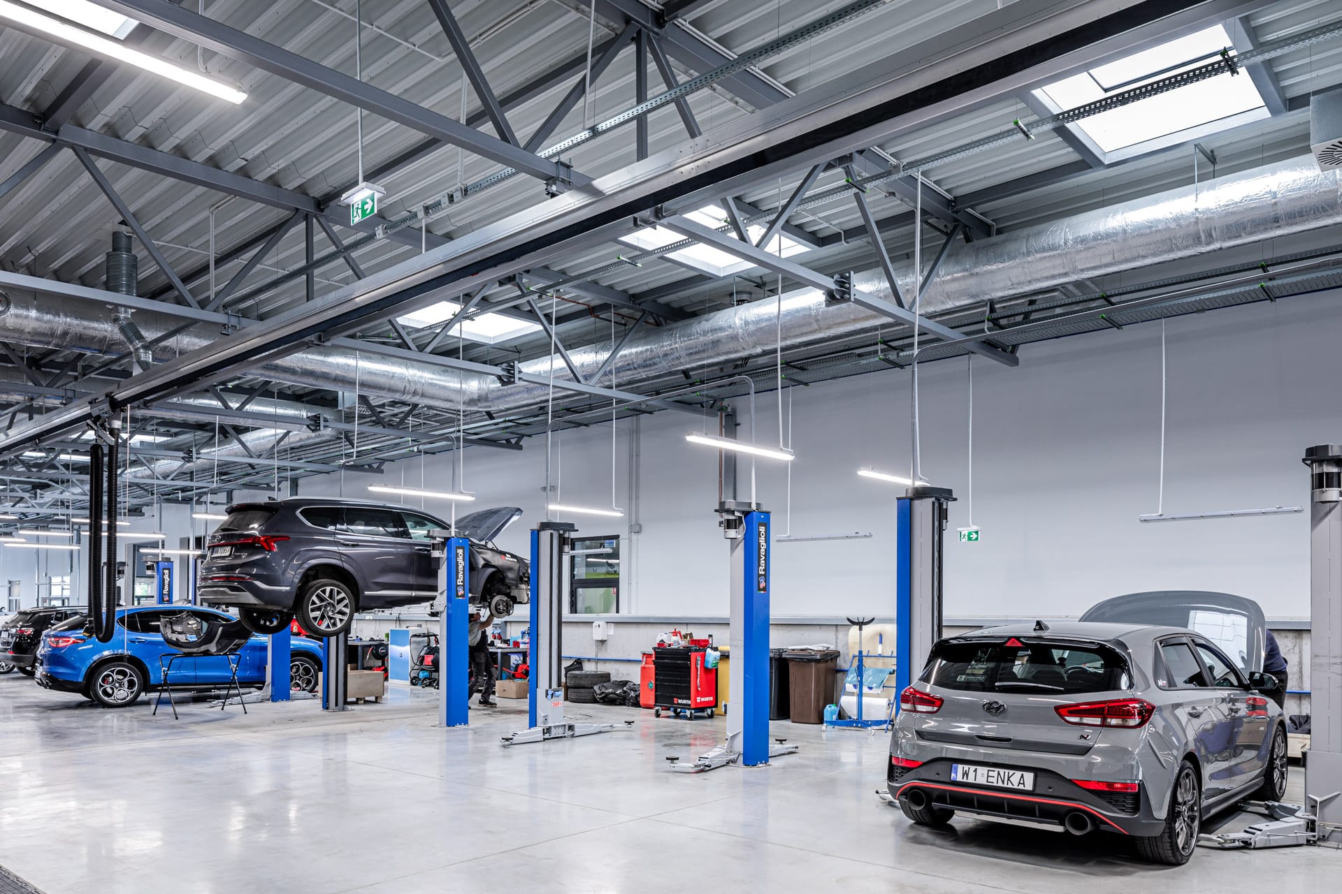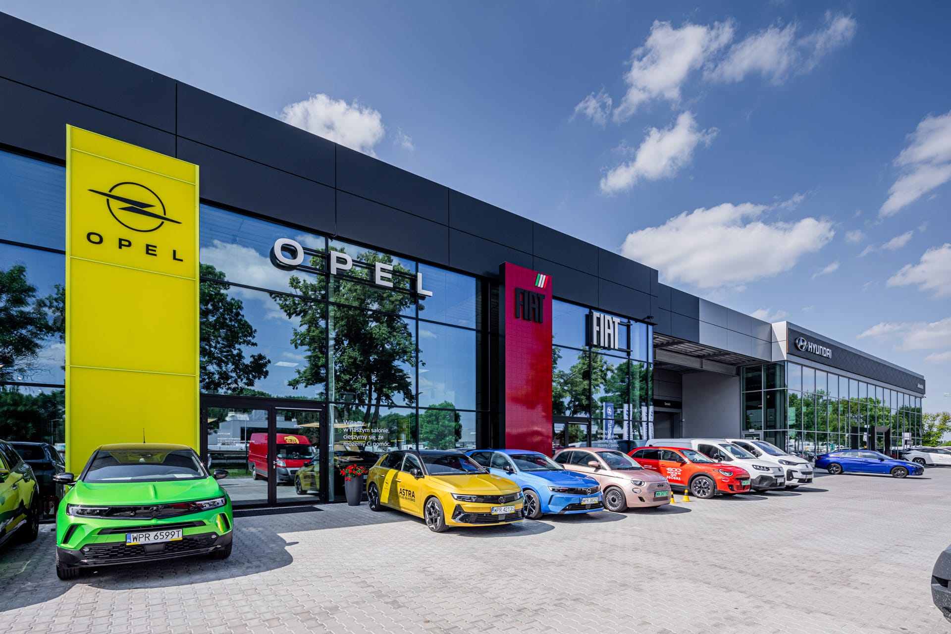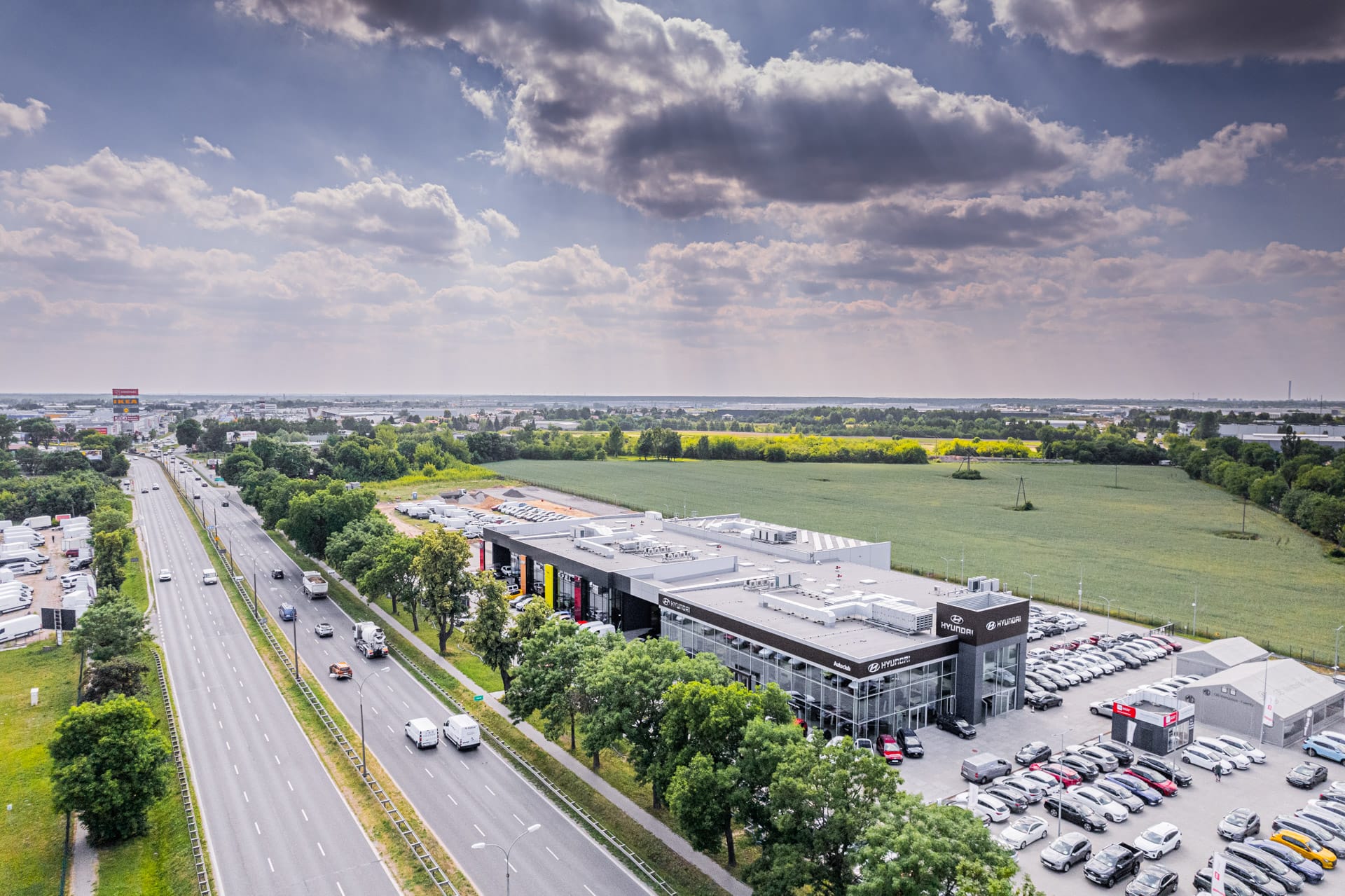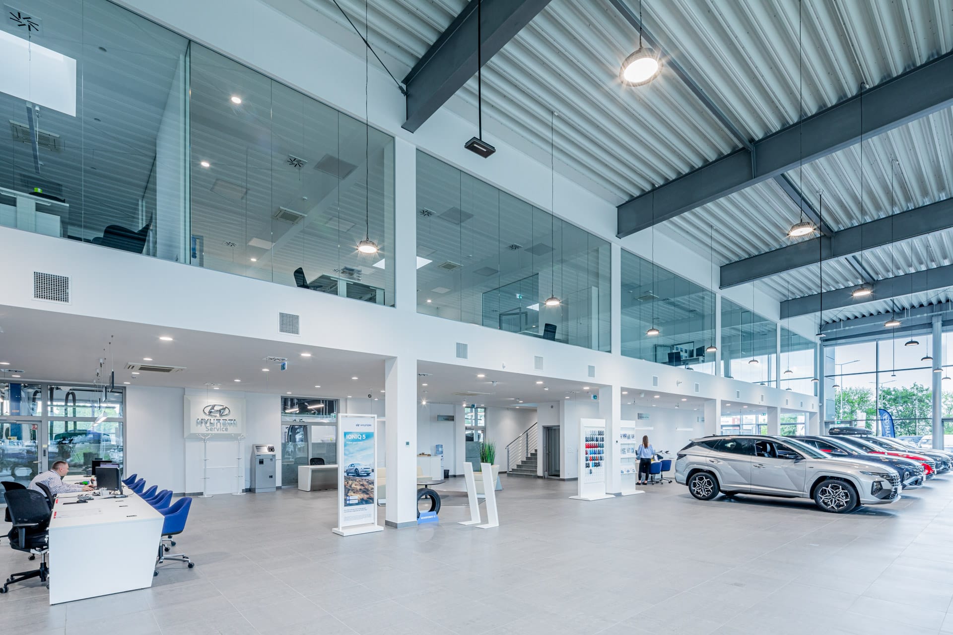 Zespół salonów samochodowych z serwisem i zapleczem biurowym.