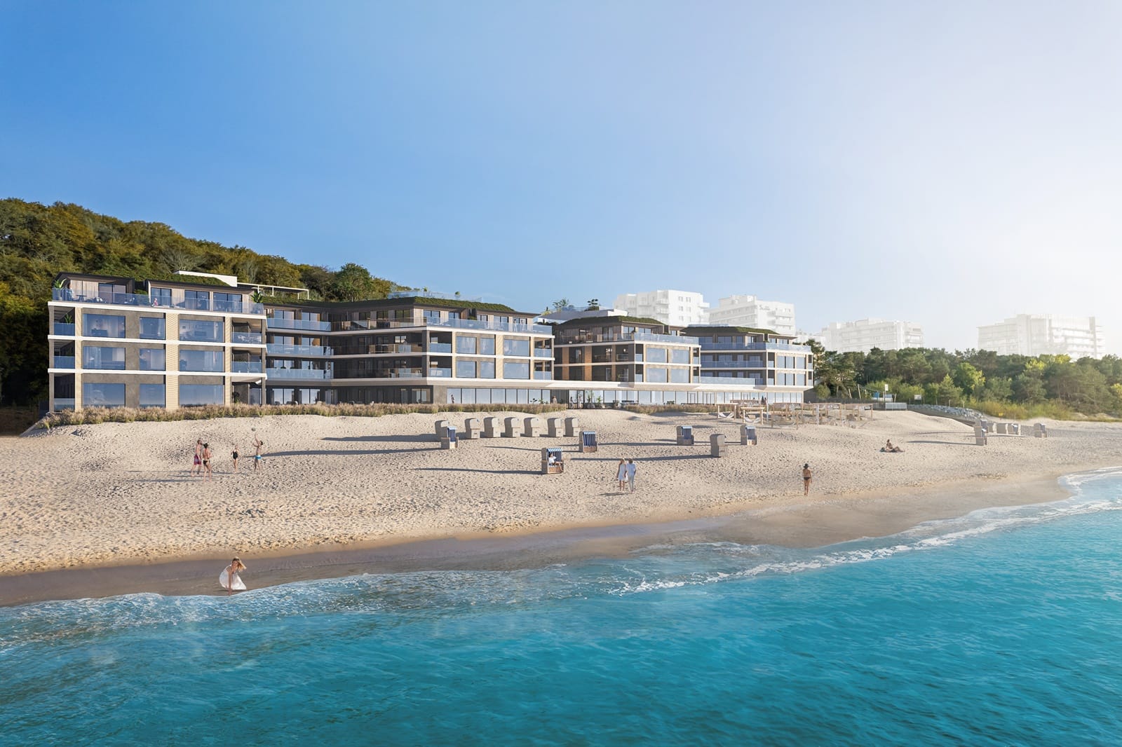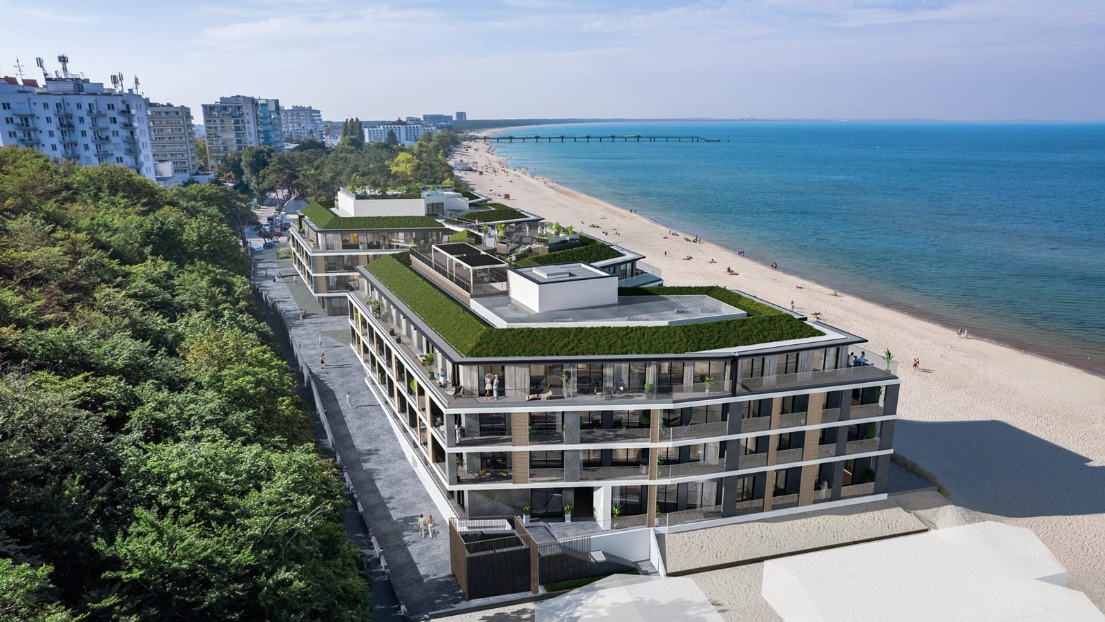 Zrealizowaliśmy pierwszy etap The Sea Resort – pięciogwiazdkowego kompleksu w Międzyzdrojach przy Promenadzie Gwiazd. W ramach inwestycji powstają 153 apartamenty (28–117 m²), penthouse’y oraz strefy rekreacyjne: basen, SPA, fitness, restauracje, skybar, tarasy widokowe i kidsroom.